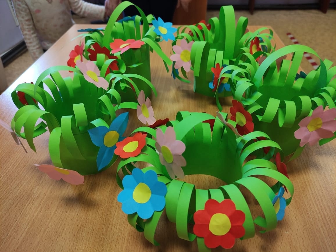 На мастер-классе "Цветочная корзиночка" дети сделали своими руками в подарок мамам и бабушкам оригинальные, яркие корзиночки цветов из бумаги.