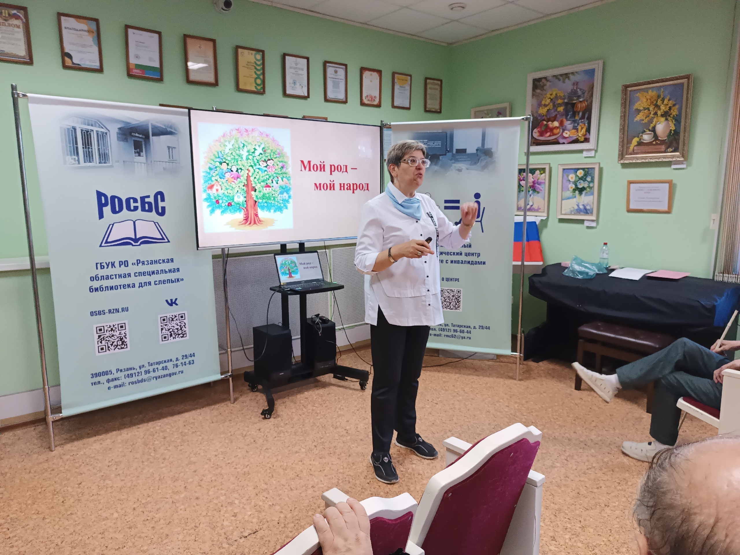 Мероприятие было посвящено Году семьи в Российской Федерации. Главный библиотекарь Регионального методического центра по работе с инвалидами Смирнова О.А. познакомила слушателей с устройством древнеславянской семьи, жизнью христианской русской семьи, этапами её создания, связями между родственниками.