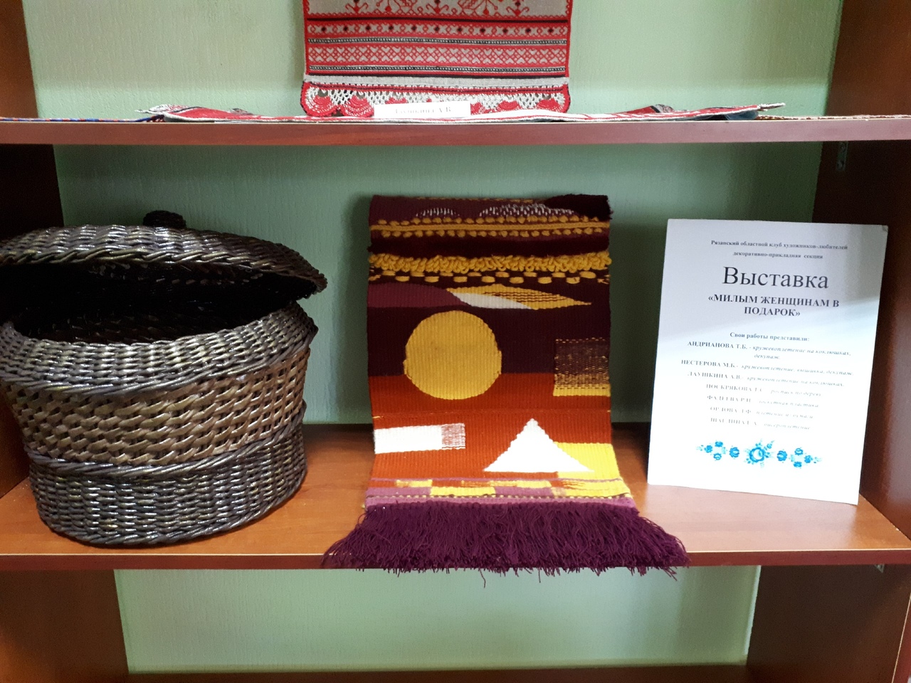 В Рязанской областной специальной библиотеке для слепых проходит выставка творческих работ Рязанского областного клуба художников-любителей декоративно прикладной секции «Милым женщинам в подарок».