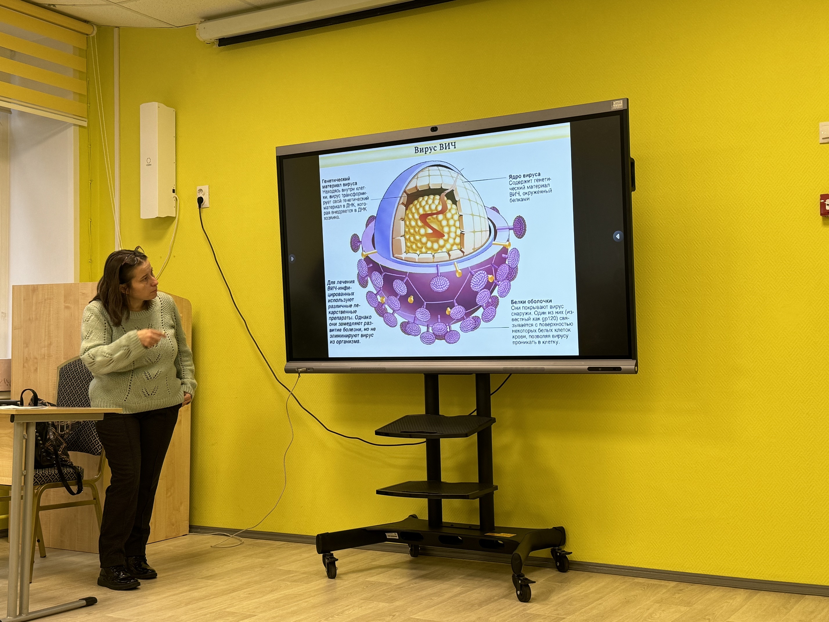 Перед старшеклассниками лицея №52 выступила кандидат медицинских наук, ассистент кафедры неврологии и нейрохирургии РязГМУ им. И. П. Павлова Наталья Владимировна Белокурова. В ходе профилактической беседы подростки узнали о том, чем отличается ВИЧ от СПИДа, каковы пути передачи и распространения заболевания, в чём состоит симптоматика заболевания, как выявляется наличие ВИЧ и какие меры предосторожности должны соблюдаться каждым здравомыслящим человеком. Просматривая презентацию, ребята увидели, как выглядит этот смертоносный вирус, как меняется внешний облик людей на разных стадиях заболевания. После лекции подростки смогли задать Наталье Владимировне все интересующие их вопросы. Беседа была очень интересной и полезной.