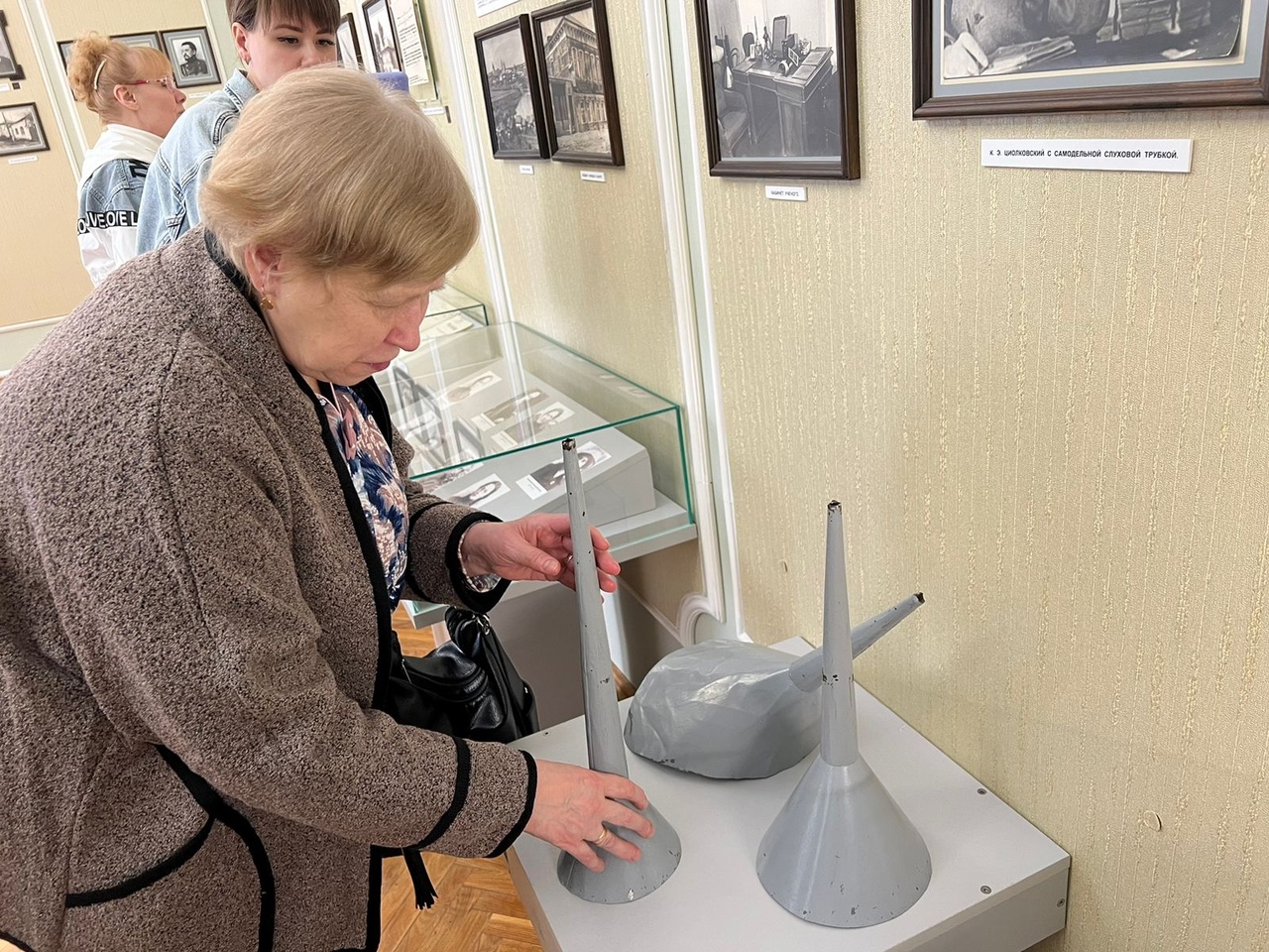 Экскурсия началась с экспозиции, которая представляет подробное описание деятельности ученого в различные периоды его жизни, раскрывает тему освоения космоса, подчеркивая при этом особую роль и неоспоримую значимость личности К.Э. Циолковского. Космический зал впечатлил посетителей спускаемым аппаратом корабля «Союз-22» с обгоревшей обшивкой, на котором вернулся с орбиты космонавт Владимир Аксёнов.