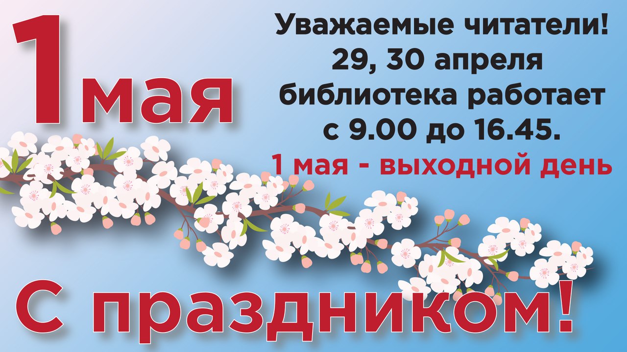 29, 30 апреля 2018 года библиотека работает с 9.00 до 16.45.