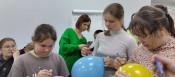 Оказывается, даже у простого воздушного шарика есть своя история возникновения. Первые шарики были изготовлены индейцами, а надувной шарик из резины сделал впервые учёный Фарадей. Посетители Центра социального развития познакомились с интересными фактами, связанными с этой незамысловатой, но любимой всеми игрушкой. Потом участники разбились на две команды – «Ух!» и «Ах!» и приступили к весёлым соревнованиям. Они надували шарики, участвовали в эстафетах и конкурсах, отгадывали загадки и заселяли шарики-планеты сказочными жителями. Победила, конечно, дружба.