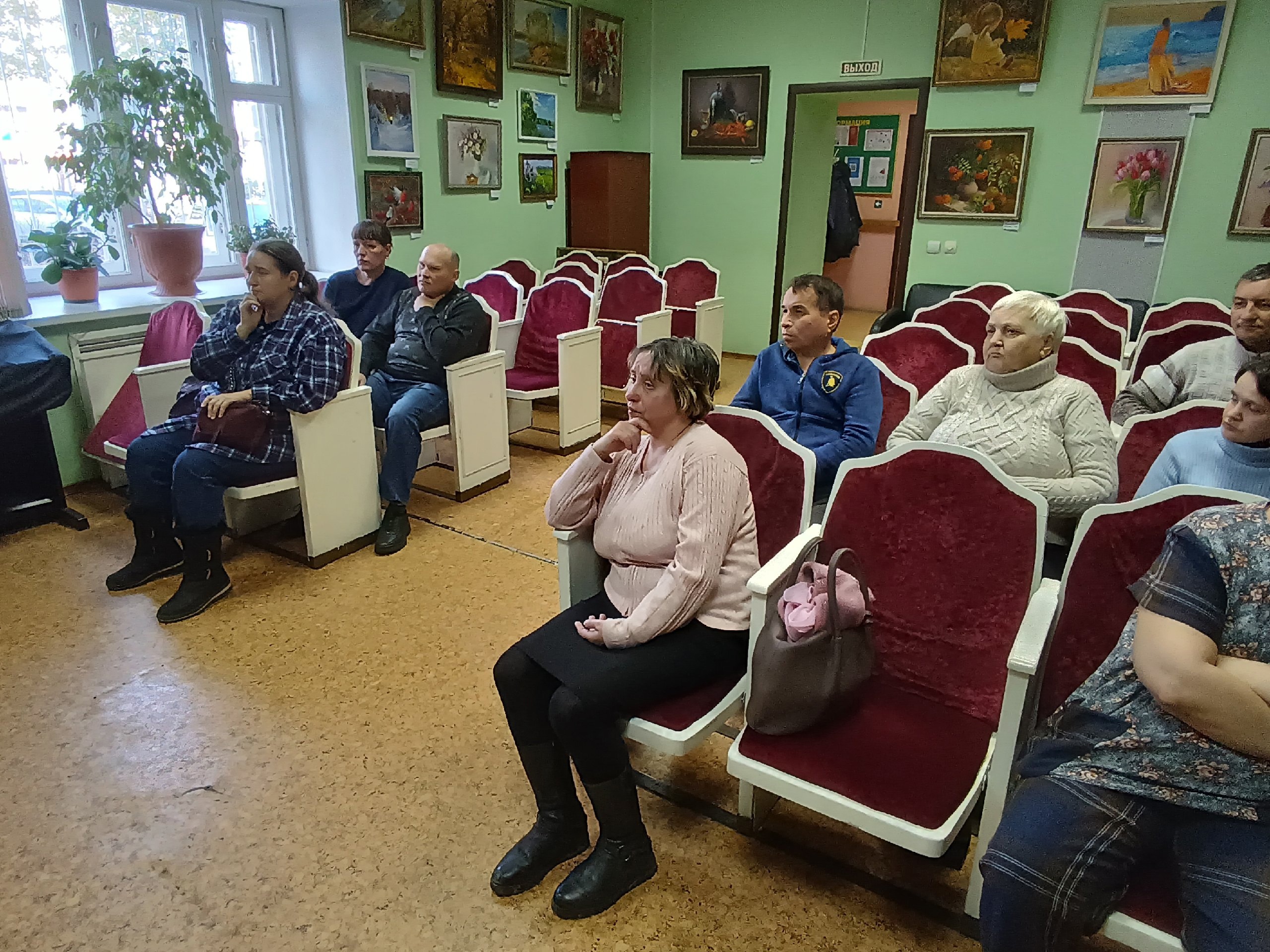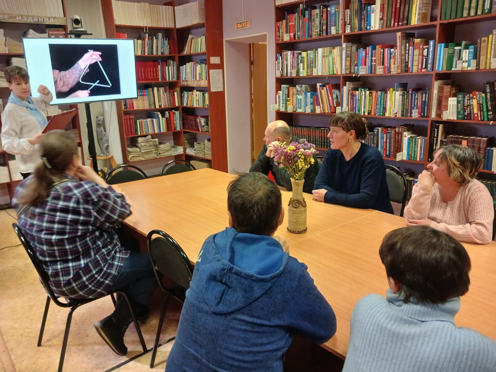 Сотрудники библиотеки задавали вопросы участникам в формате текстовых вопросов и иллюстраций. Атмосфера в зале была оживленной, читатели активно участвовали, обсуждали вопросы между собой.