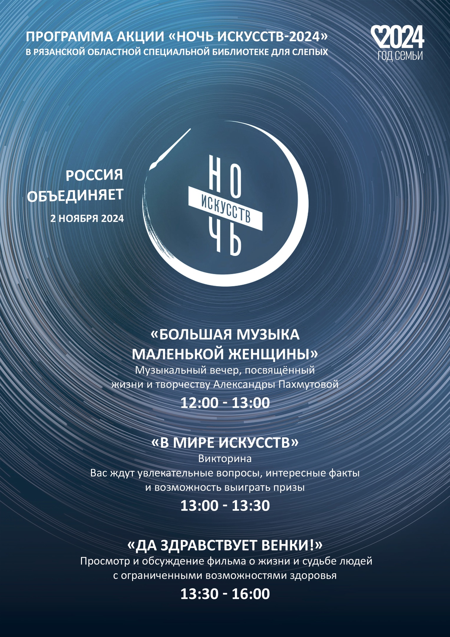2 ноября 2024 года в рамках Всероссийской акции «Ночь искусств» в библиотеке было организовано несколько площадок.