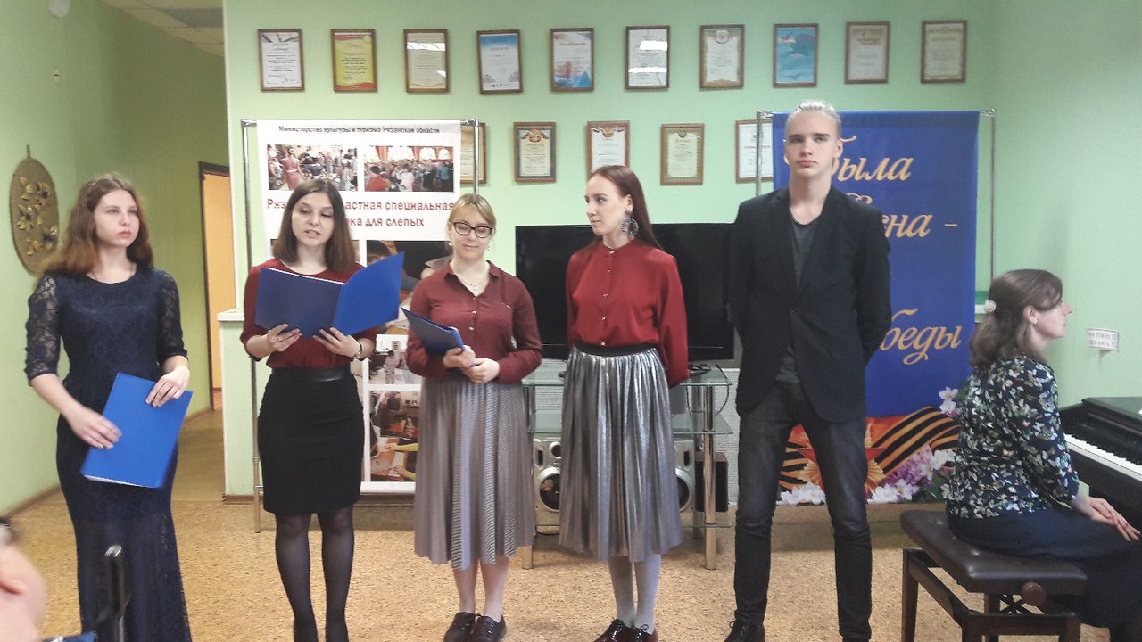8 мая 2018 года в Рязанской областной специальной библиотеке для слепых прошел концерт студентов и выпускников Рязанского музыкального колледжа им. Г. и А. Пироговых, посвященный Дню Победы.