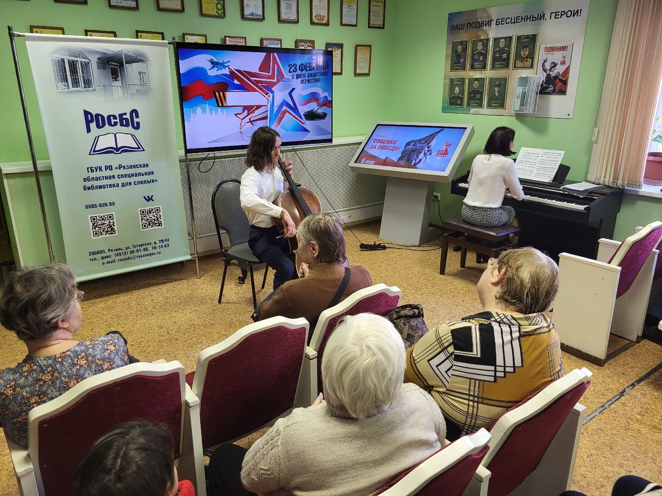25 февраля 2025 года в нашей библиотеке состоялся замечательный концерт, посвящённый Дню защитника Отечества, подготовленный студентами Рязанского музыкального колледжа им. Г. и А. Пироговых. Программа, озаглавленная «Защитникам Отечества мы славу поем!», поразила слушателей своим разнообразием и высоким исполнительским мастерством.