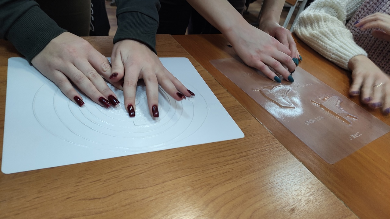 Студенты погрузились в мир незрячего человека: писали шрифтом Брайля, пробовали с закрытыми глазами найти пару носков, угадать рельефно-графическую картину и ходили с закрытыми глазами с помощью трости. Кроме того сотрудники библиотеки рассказали, как правильно предложить помощь человеку с инвалидностью по зрению и оказать её.