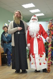 В завершении праздника детей и родителей поприветствовал настоятель Спасо-Преображенского Пронского мужского монастыря, кандидат исторических наук, писатель, публицист, телевизионный ведущий игумен Лука, который подарил всем ребятишкам подарки. Дед Мороз и Снегурочка тоже подарили участникам мероприятия книги-раскраски и небольшие сладкие подарки.