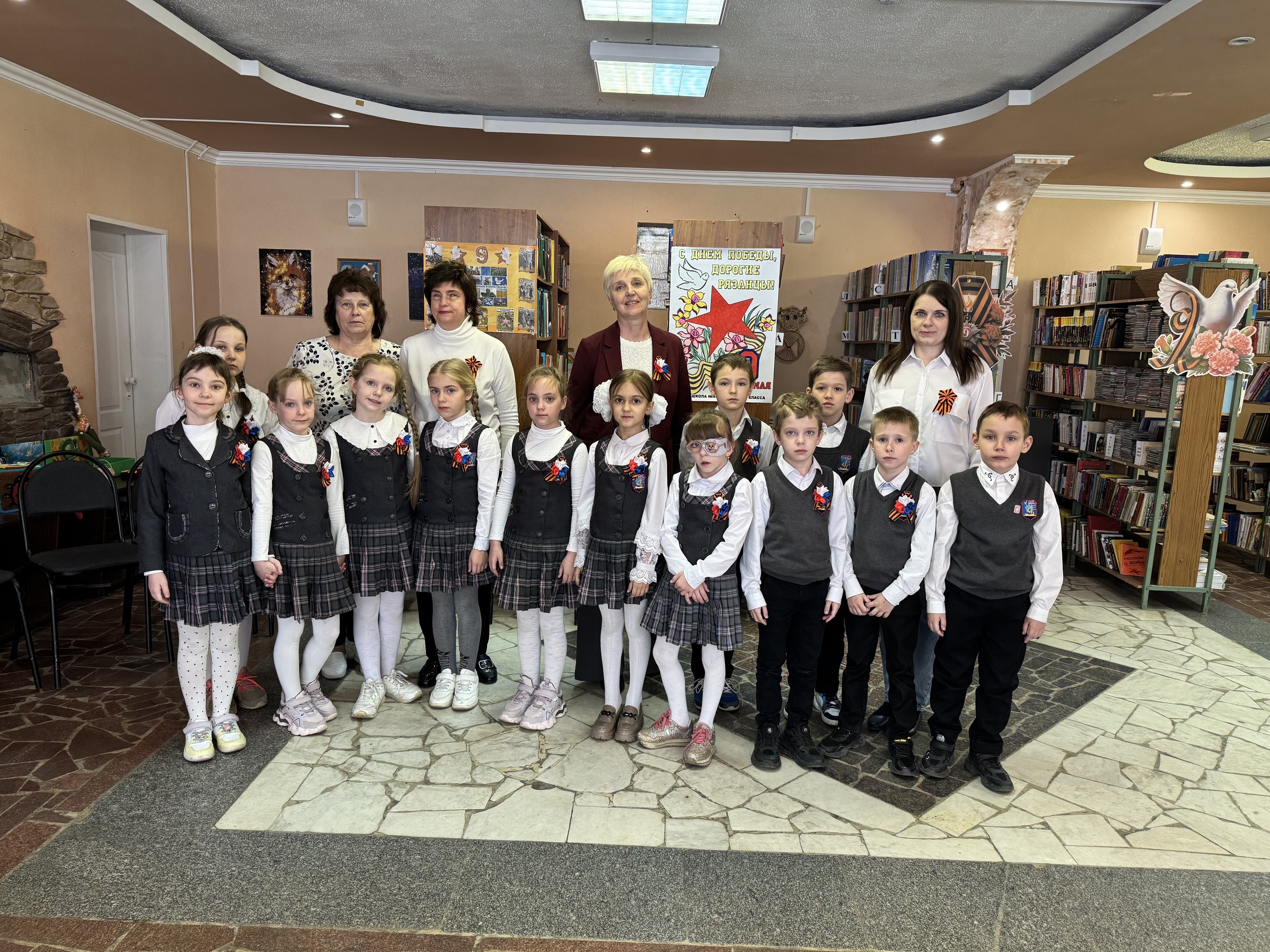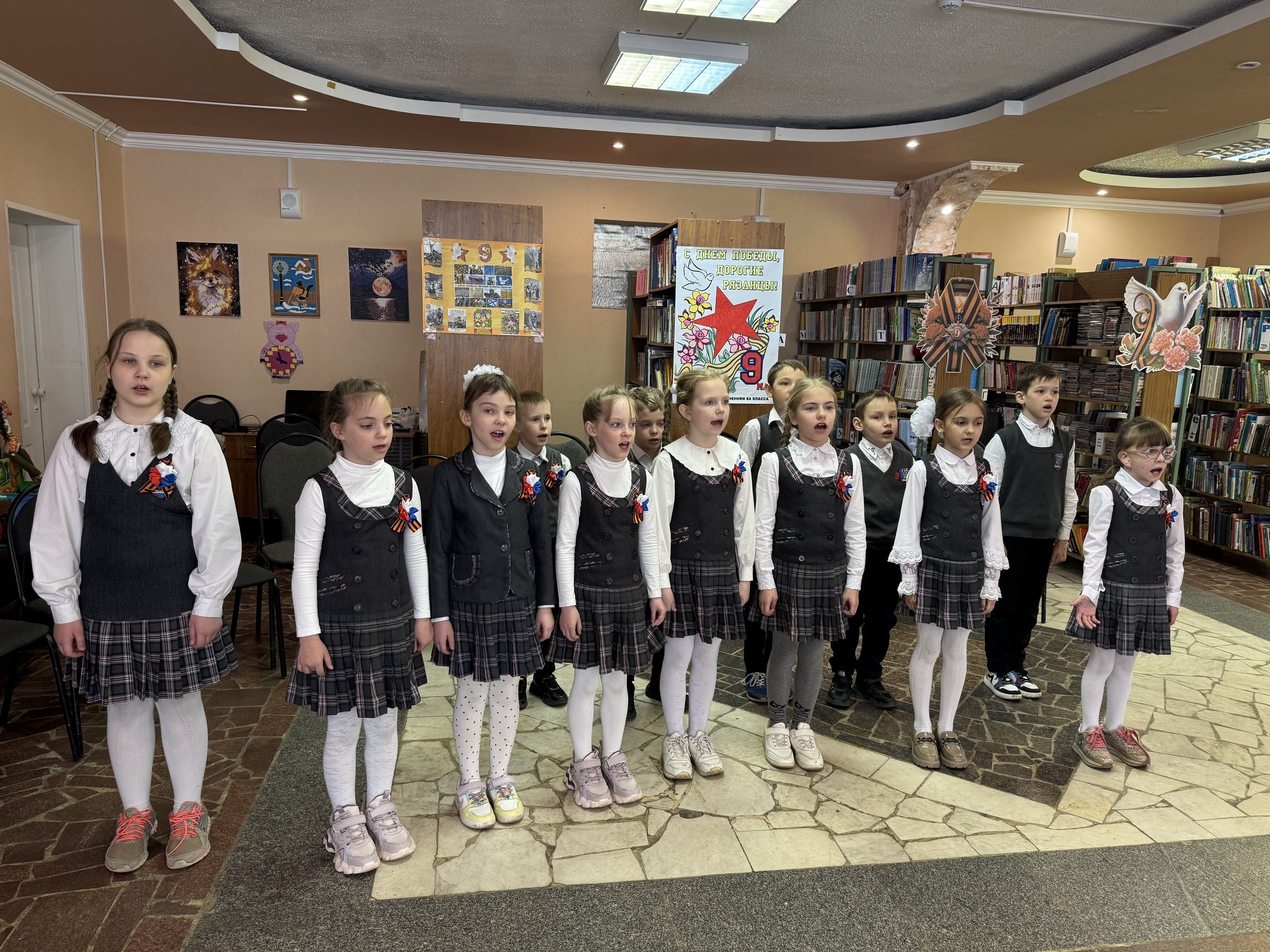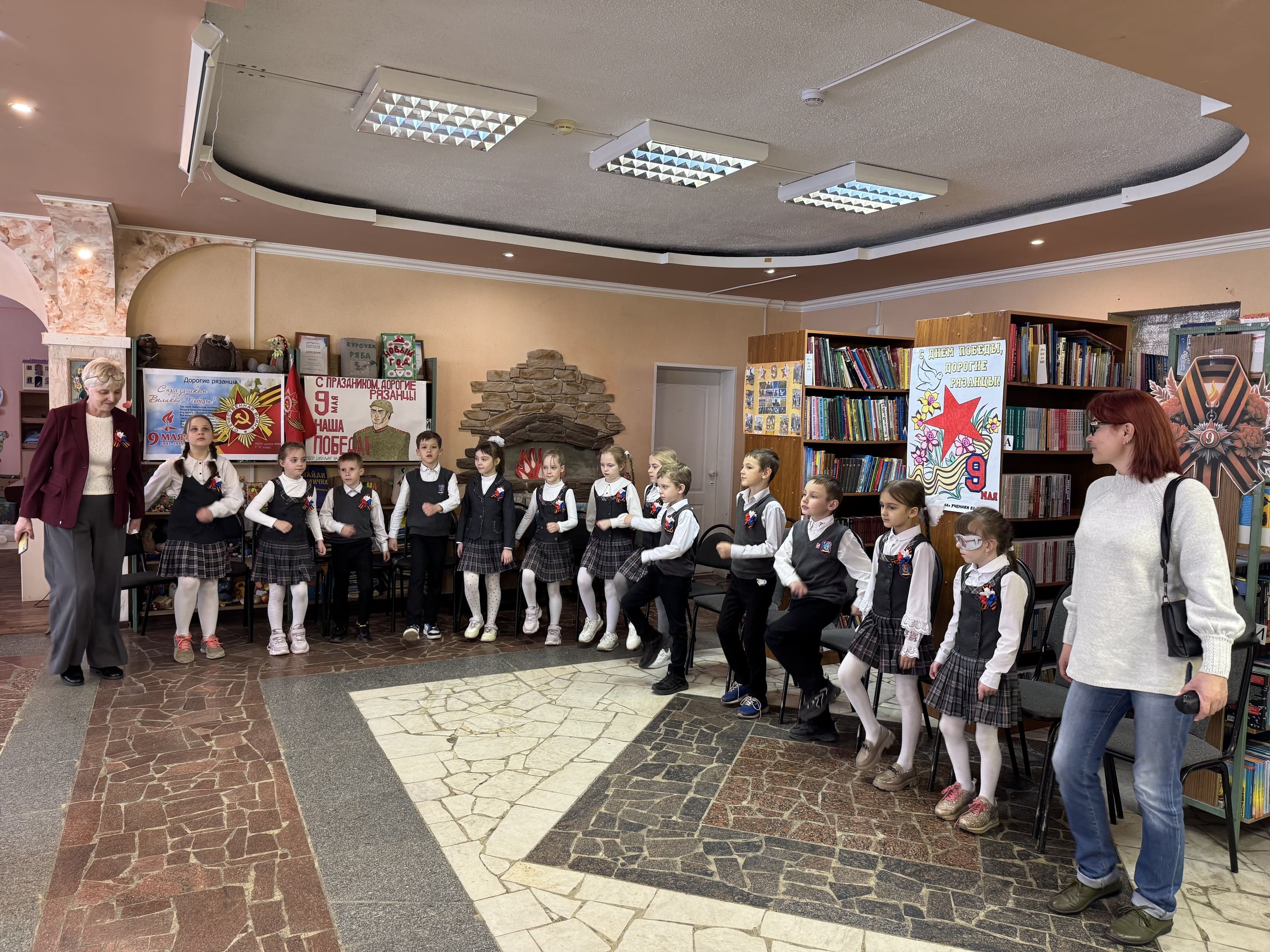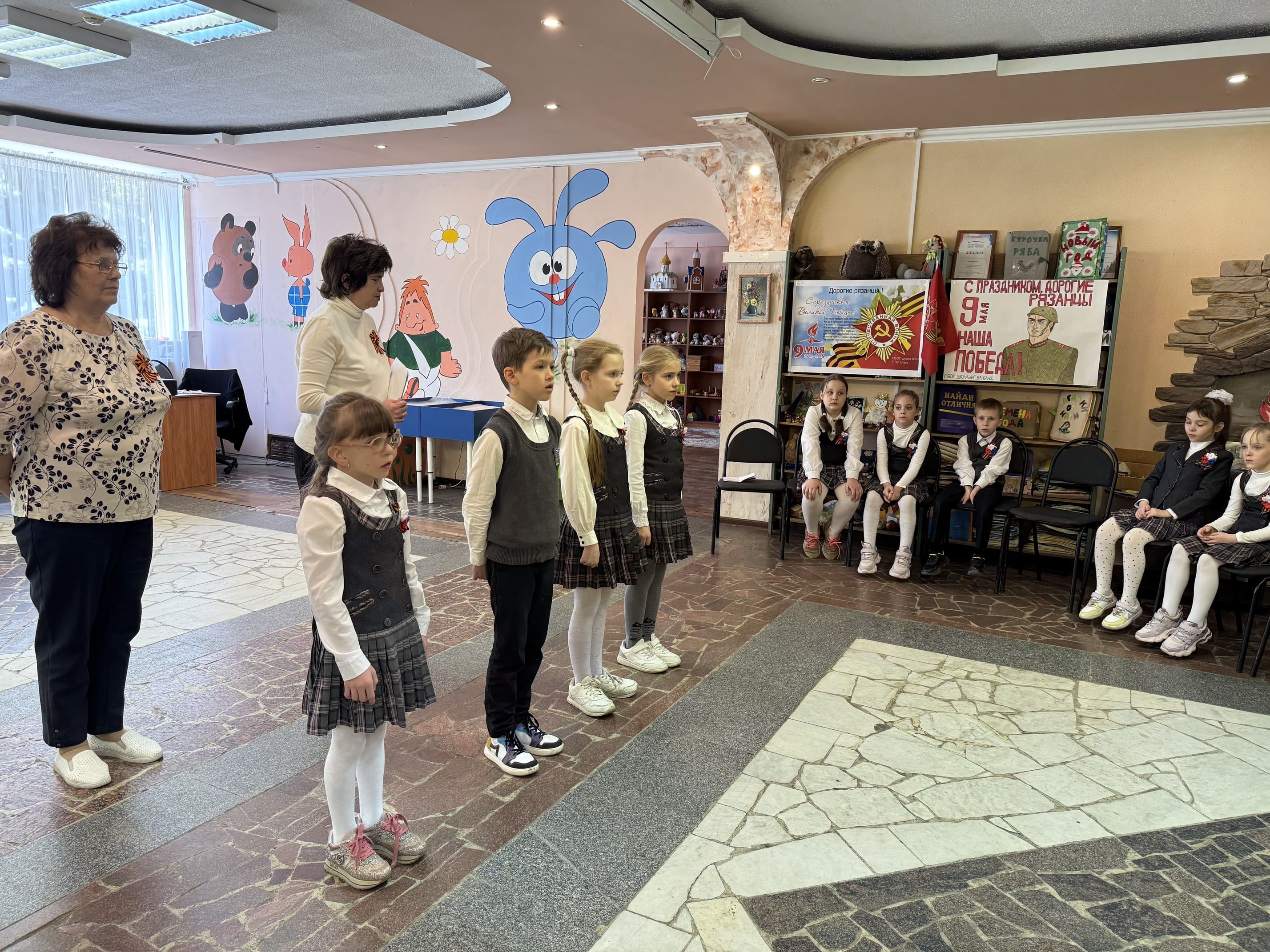 К нам в гости вновь пришли ученики 2 класса школы №44. Дети услышали песни военных лет, стихи Роберта Рождественского, Георгия Рублёва и других поэтов. Их читали не только сотрудники детского отдела, но также и ребята заранее выучили стихи, прозвучавшие очень выразительно. Потом второклассники спели несколько песен о войне и исполнили марш «Прощание славянки», а педагоги поделились воспоминаниями о подвигах своих предков. У нас получился серьёзный, задушевный разговор. Хочется верить, что он запомнится детям.