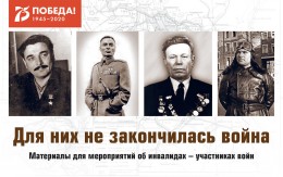 В год празднования 75-летия Победы в Великой Отечественной войне 1941-1945 гг. Региональный методический центр по работе с инвалидами ГБУК РО «РОСБС» подготовил сборник материалов для мероприятий об инвалидах-участниках войн «Для них не закончилась война», в котором продолжает знакомить с историями людей, получивших в боях тяжелейшие ранения и вернувшихся в строй.