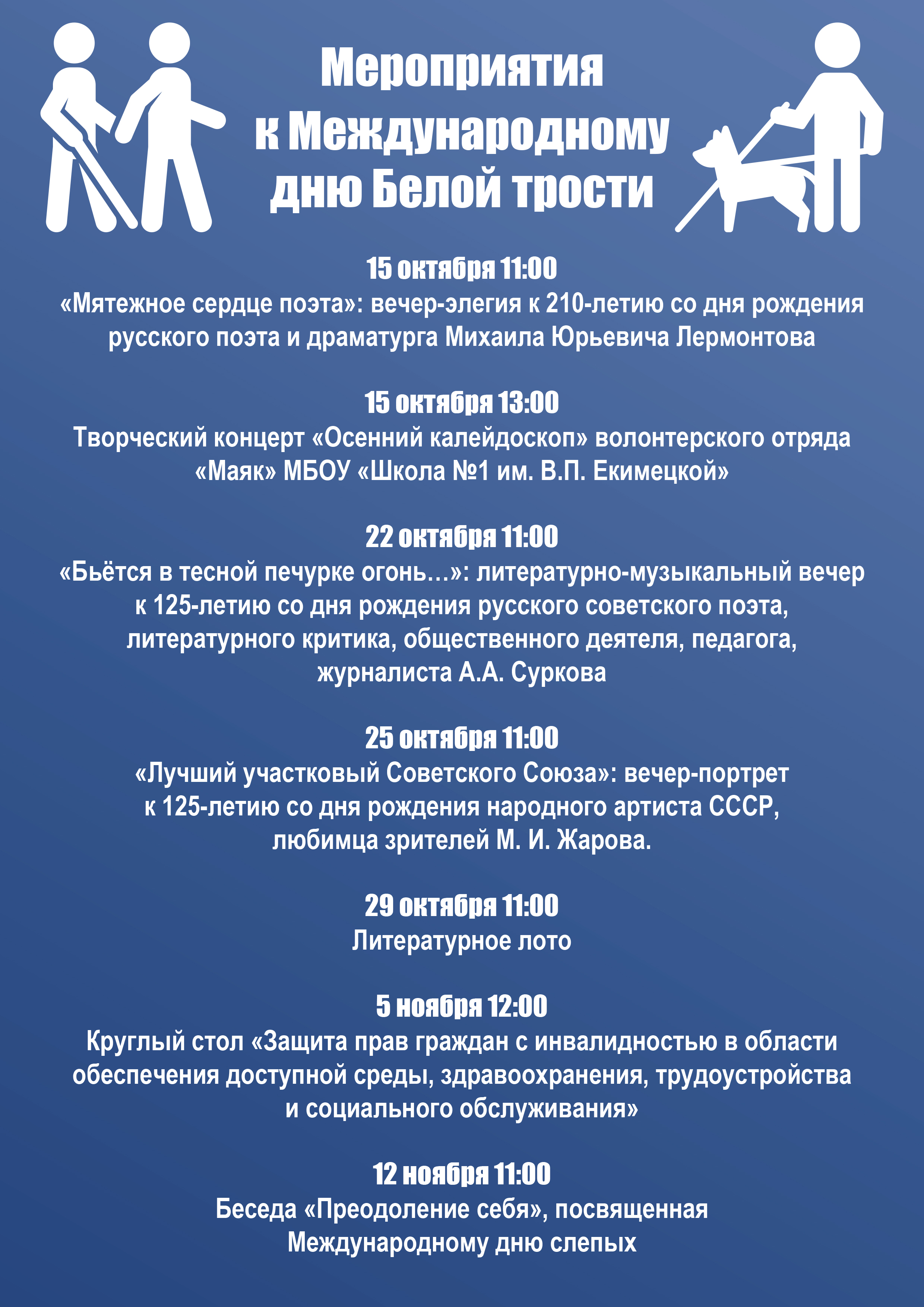 12 ноября 11:00 - Беседа «Преодоление себя», посвященная Международному дню слепых.