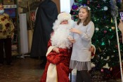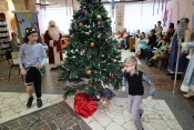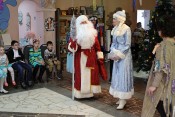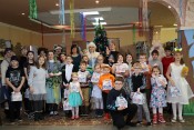 В конце праздника Дед Мороз вручил всем новогодние подарки, а затем ребята фотографировались возле нарядной ёлки с Дедом Морозом, Снегурочкой, Лесовичком, котом Матвеем, Бабой Ягой, Кащеем, Кикиморой и разбойниками.
