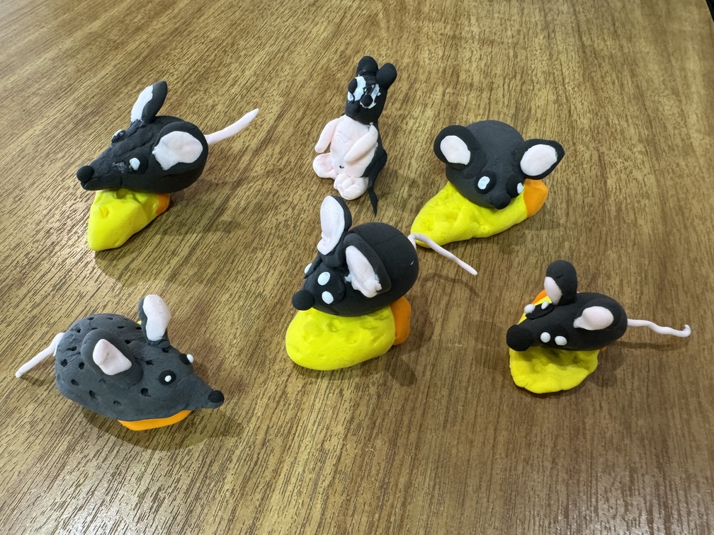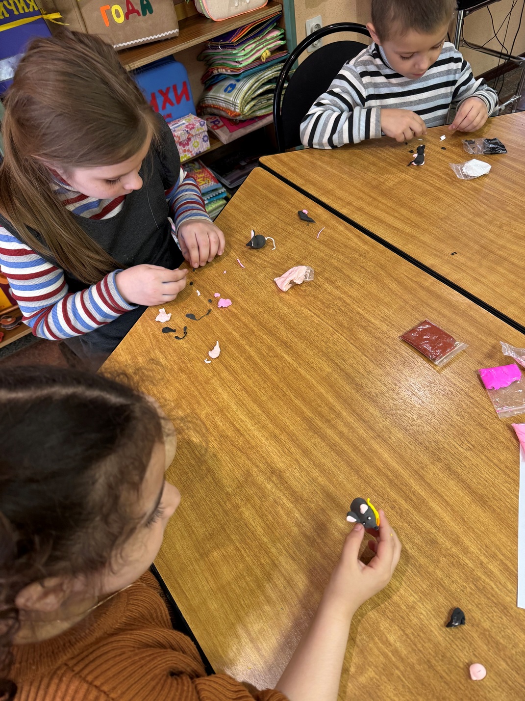Сотрудники отдела побеседовали с детьми о том, в каких книгах и мультфильмах мы можем встретить мышей, какие они внешне и по характеру, какие у них повадки. Потом ребята приступили к лепке мышат из мягкого пластилина. Лепить из мягкого пластилина труднее, чем из обычного, потому что на начальном этапе он хуже сохраняет форму. Зато потом, когда поделка высохнет, она превращается в настоящую игрушку. Каждый слепил мышонка, непохожего на других, так что получилось целое мышиное семейство.