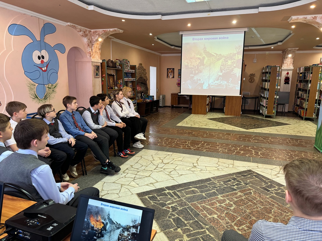 14 марта 2025 года в детском отделе Рязанской областной специальной библиотеки для слепых состоялась патриотическая беседа «Карта Победы» для учеников 7 класса школы №16. С семиклассниками встретился участник боевых действий подполковник кафедры тактико-специальной подготовки Рязанского гвардейского высшего воздушно-десантного ордена Суворова дважды Краснознамённого командного училища имени генерала армии В.Ф. Маргелова. Он рассказал ребятам о нелёгких буднях войны, о том, как живут солдаты, как они берут с боем населённые пункты. Затем семиклассники посмотрели фильм «Карта Победы», давший название этому мероприятию. Хочется надеяться, что доверительный разговор с настоящим военным не оставил подростков равнодушными.