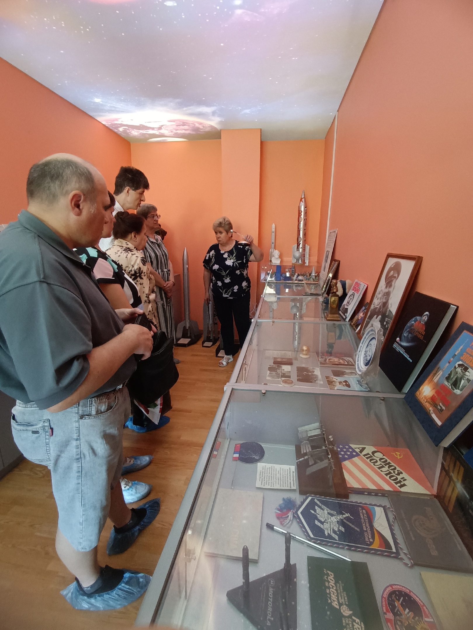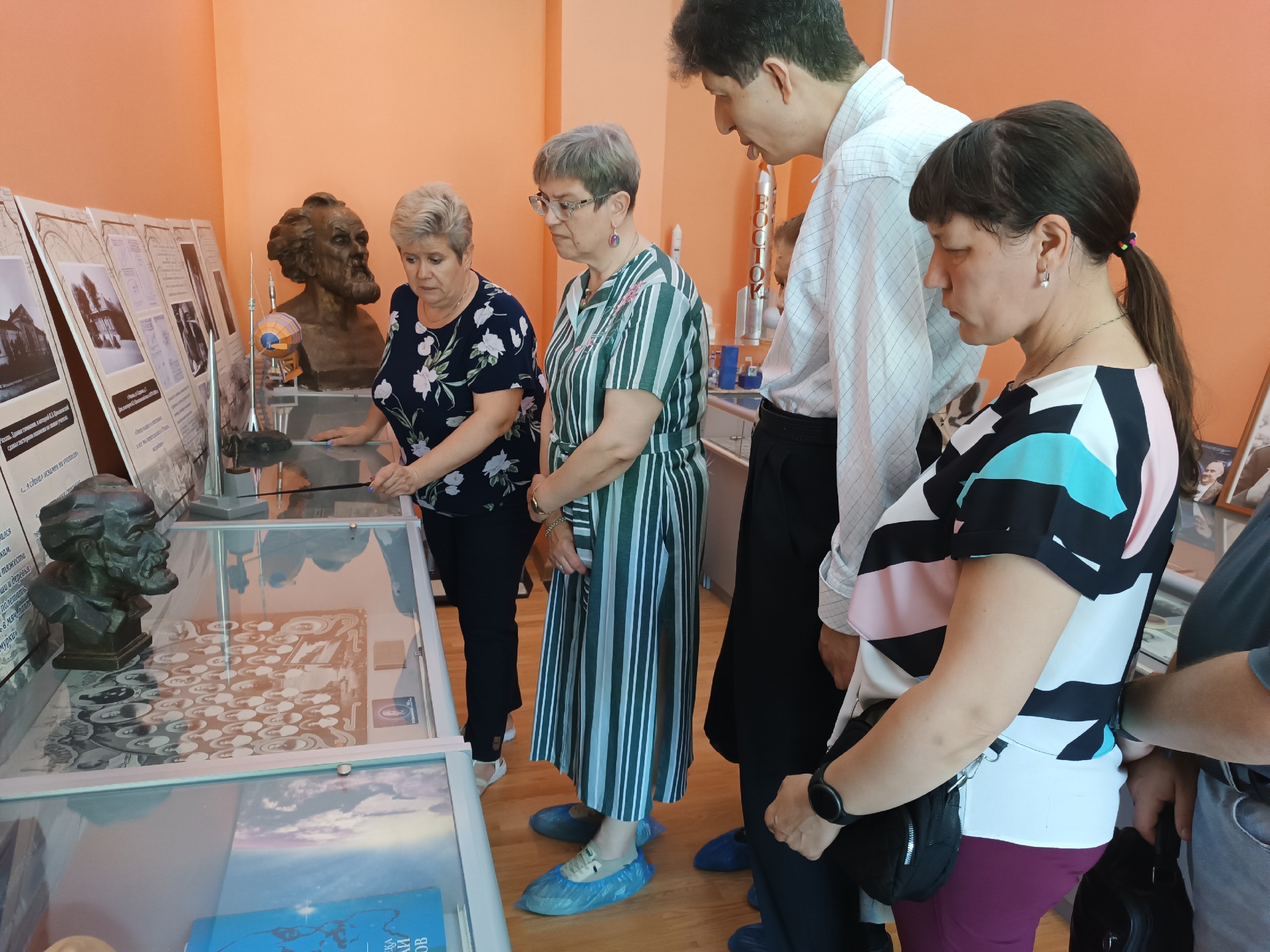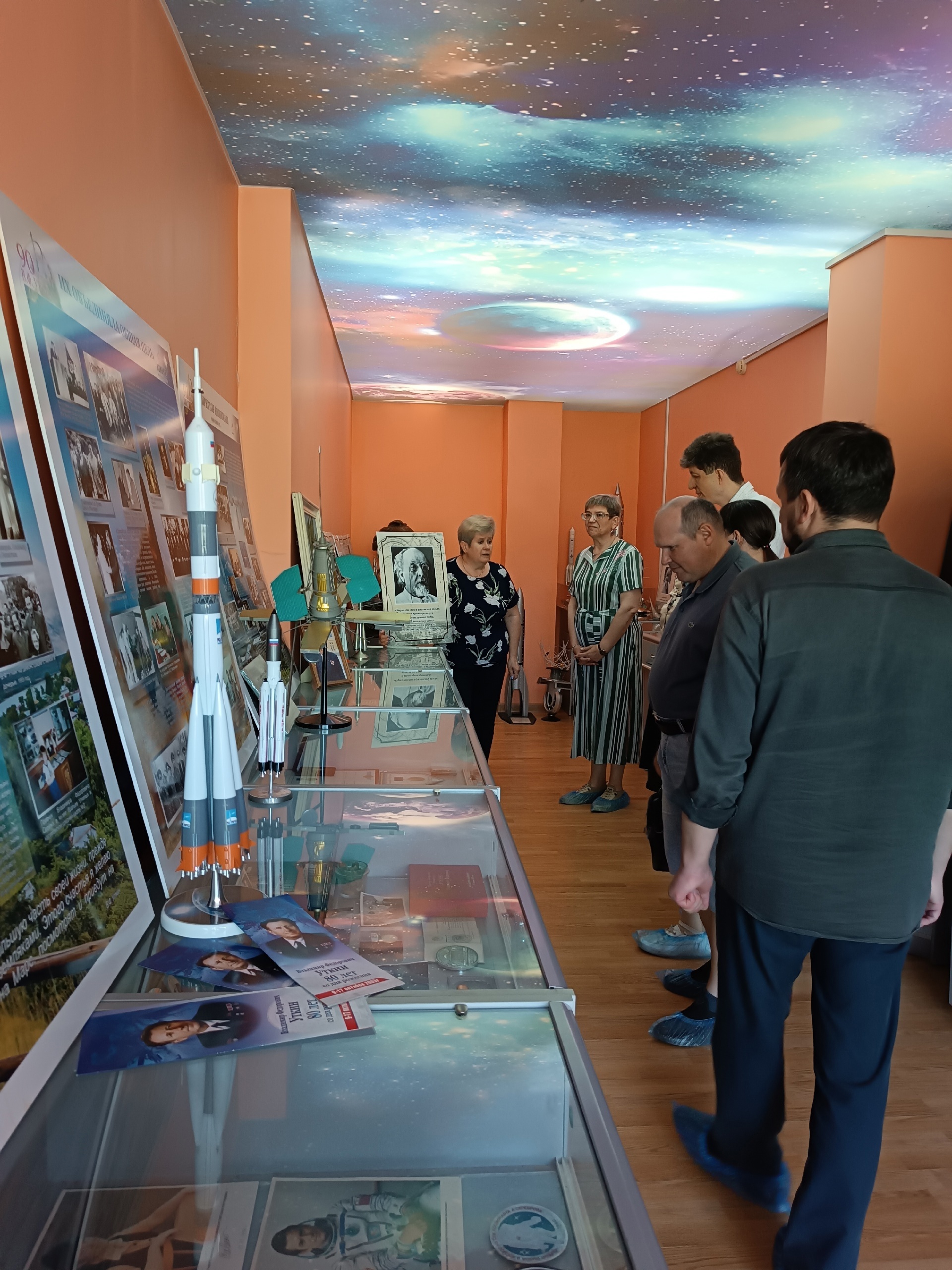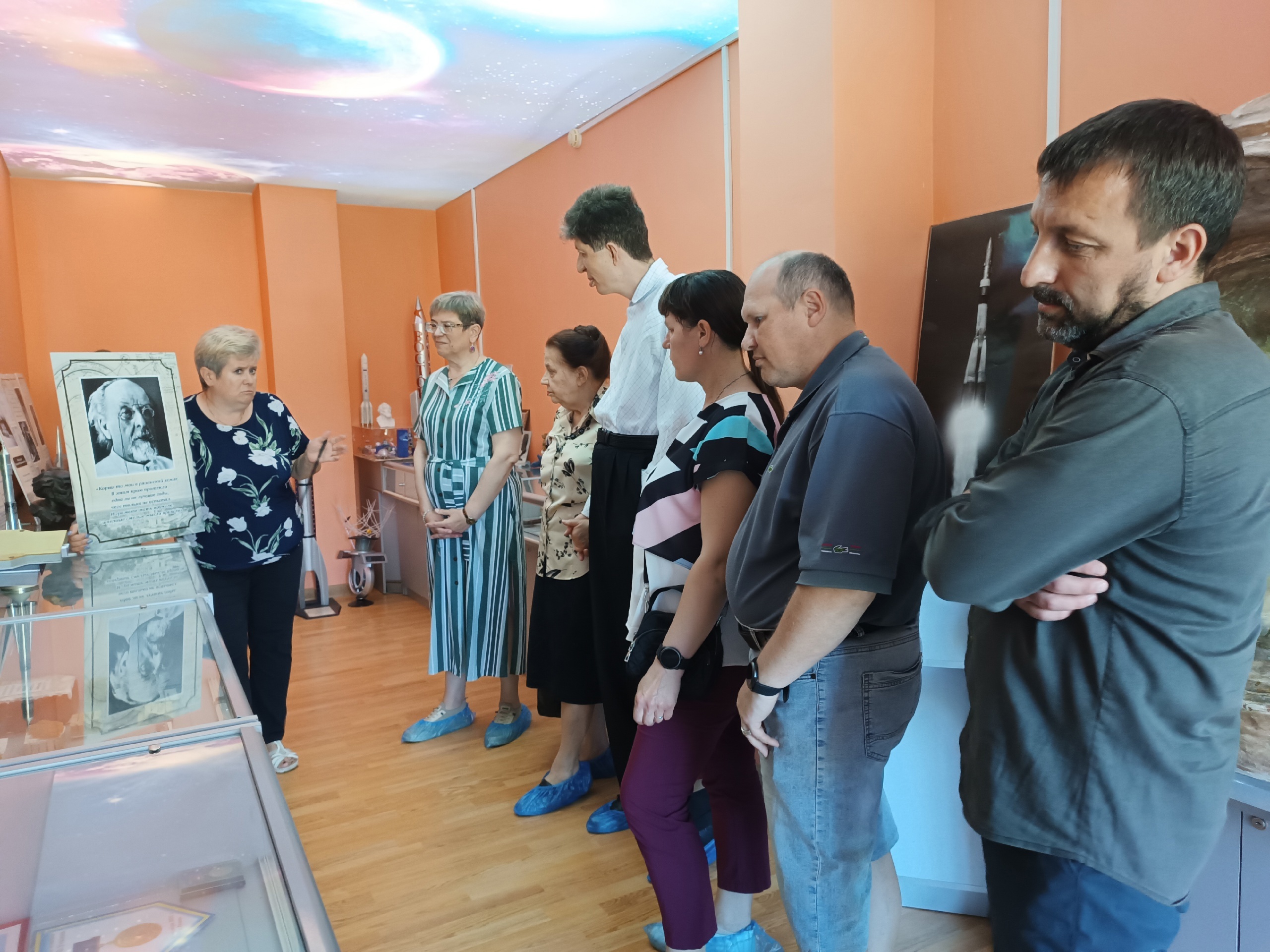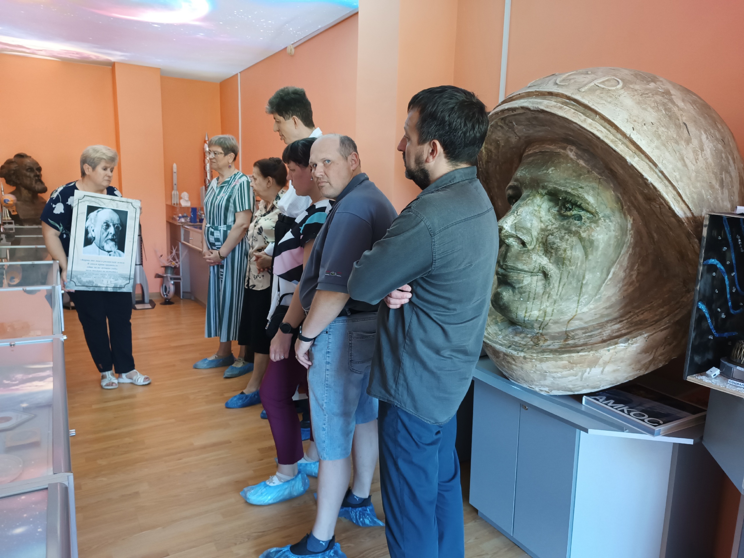Очень интересную и познавательную экскурсию по экспозиции провела руководитель музея Татьяна Викторовна Михайлова. Она познакомила участников мероприятия с биографией К.Э. Циолковского, его трудами, которые открыли человечеству дорогу в космос. Также она представила уникальные экспонаты, среди которых детали космического корабля «Восток-1», поднявшего на околоземную орбиту Юрия Гагарина, копия спутника "Космос 1500", космическое питание, тренировочный костюм космонавта, прижизненные издания книг К.Э. Циолковского, письма людей, жизнь которых связана с космосом...