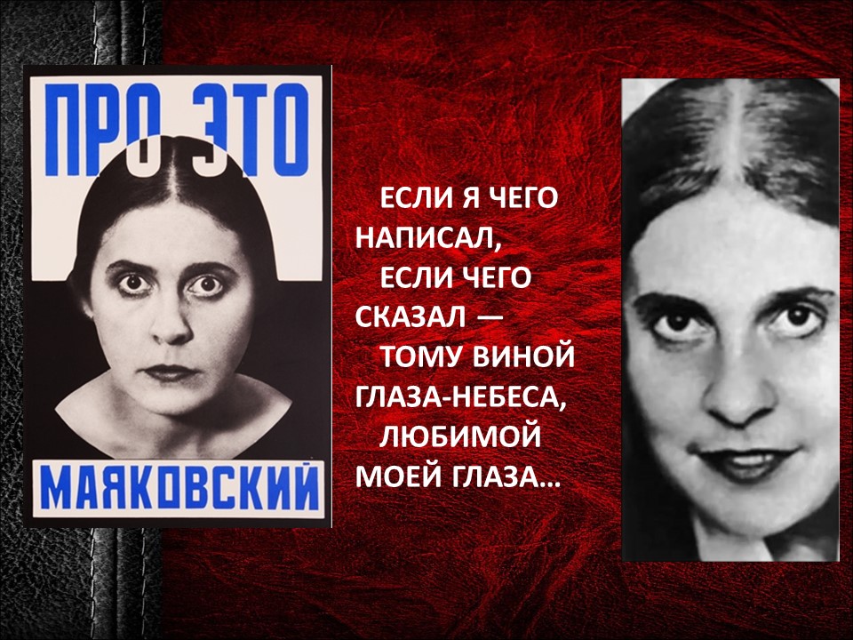 К моменту встречи с Маяковским Брик уже была искушенной в любовных делах дамой, уже многое повидала и попробовала. Она была замужем за Осипом Бриком, в которого была влюблена с 13 лет.
