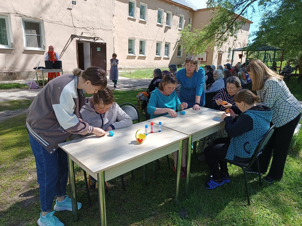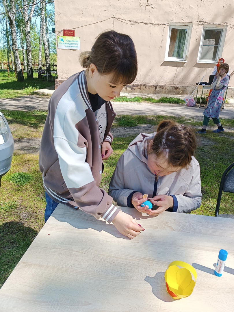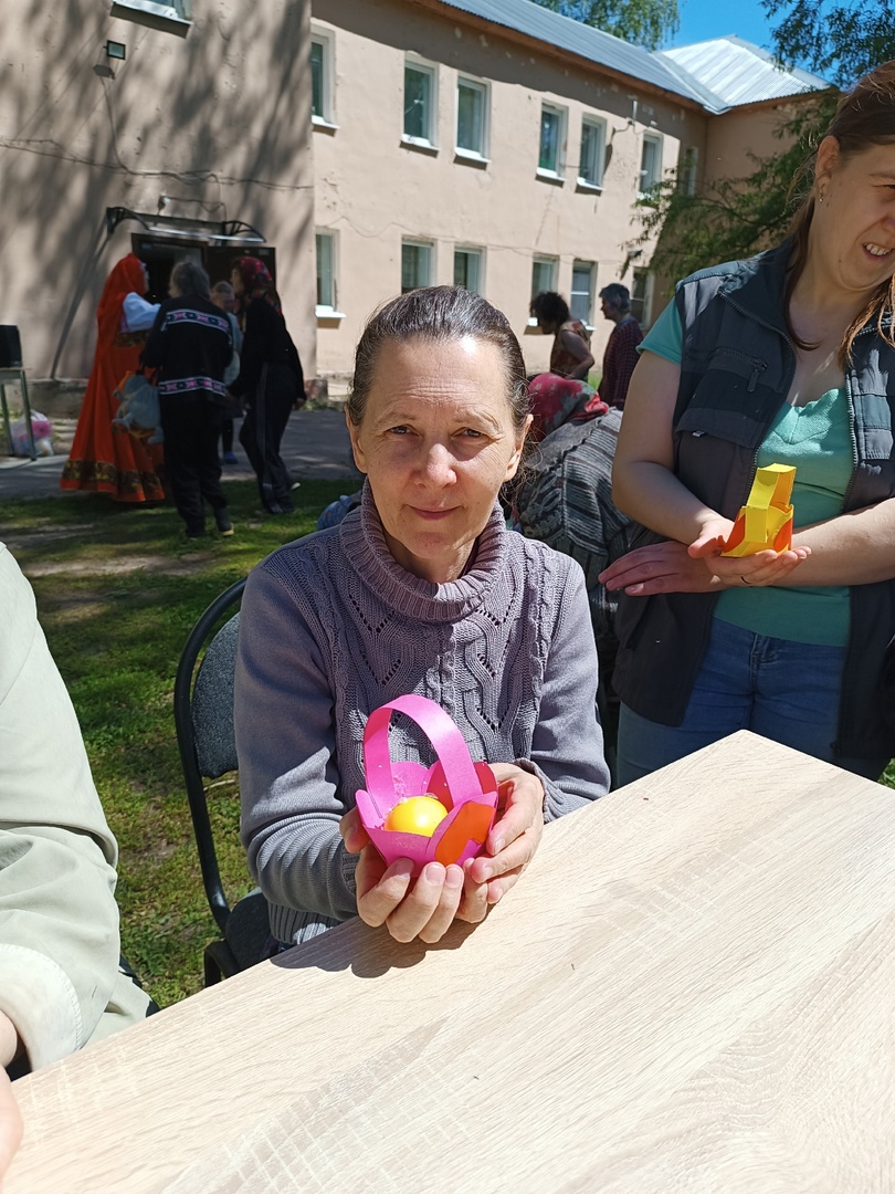 От Пасхи до Вознесения славят люди светлый праздник Воскресения Христова. Сотрудники библиотеки присоединились к этой традиции, посетив Ухорский ПНИ Спасского района, с которым их связывают многолетние отношения. Они привезли программу «Пасхальная радость», подготовленную специально для проживающих в интернате. В неё вошли музыкально-игровая программа и мастер-класс.