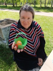 Мастер-класс «Пасхальная корзиночка» для проживающих в ПНИ провели сотрудники читального зала. Женщины украшали пластиковые яйца декоративными элементами и мастерили корзиночки для них.