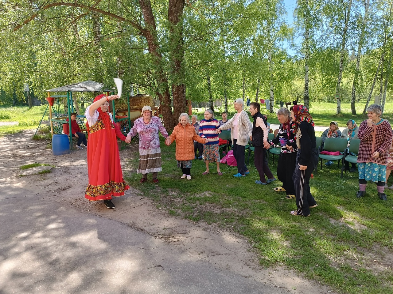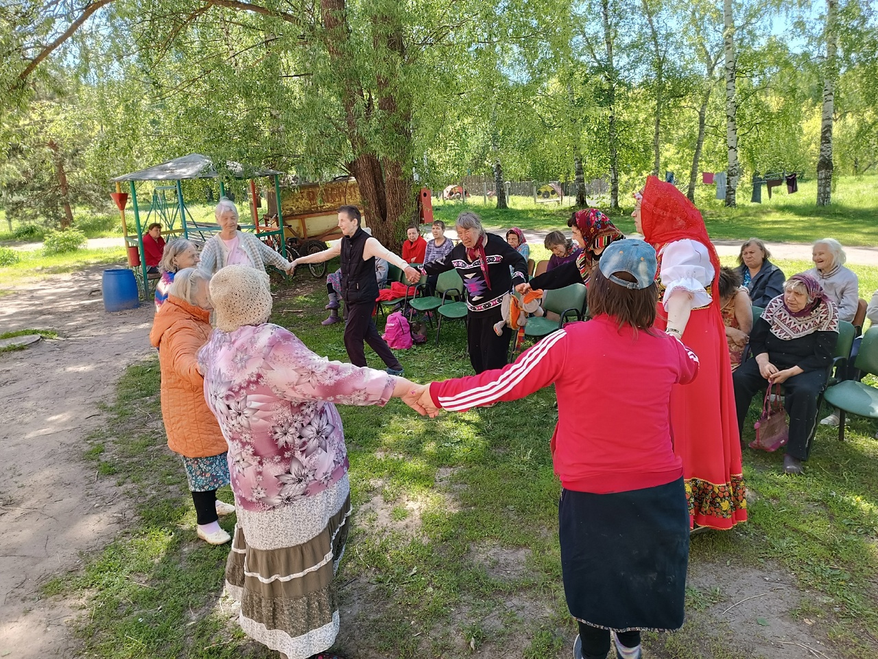 Музыкально-игровая программа состояла народных игр «Тетёра», «У дядюшки Трифона», «Маленича», «Дуга». Помимо этого, проживающие в ПНИ пели народные песни и водили хоровод. Эту часть программы подготовили сотрудники Регионального методического центра по работе с инвалидами.