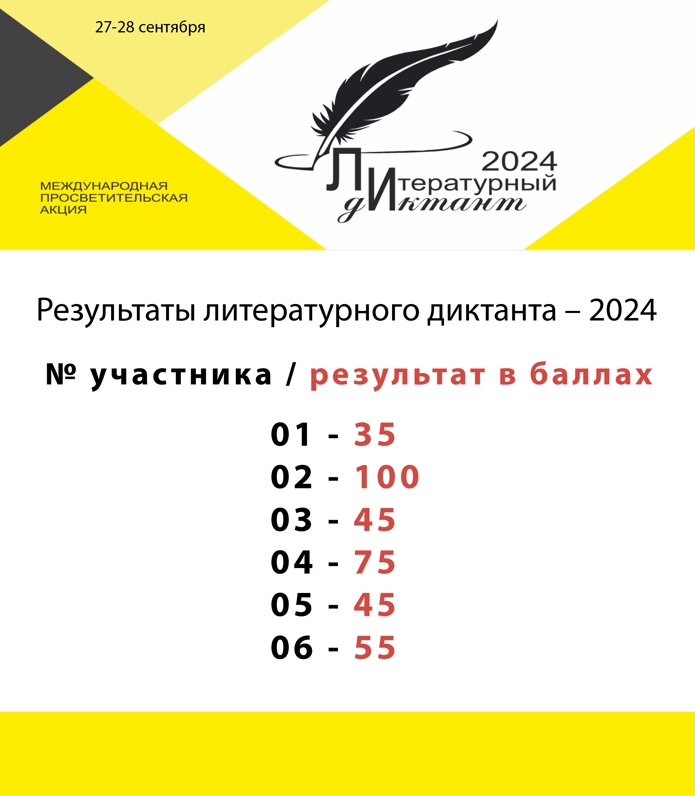 Результаты участников «Литературного диктанта» представлены в таблице ниже.