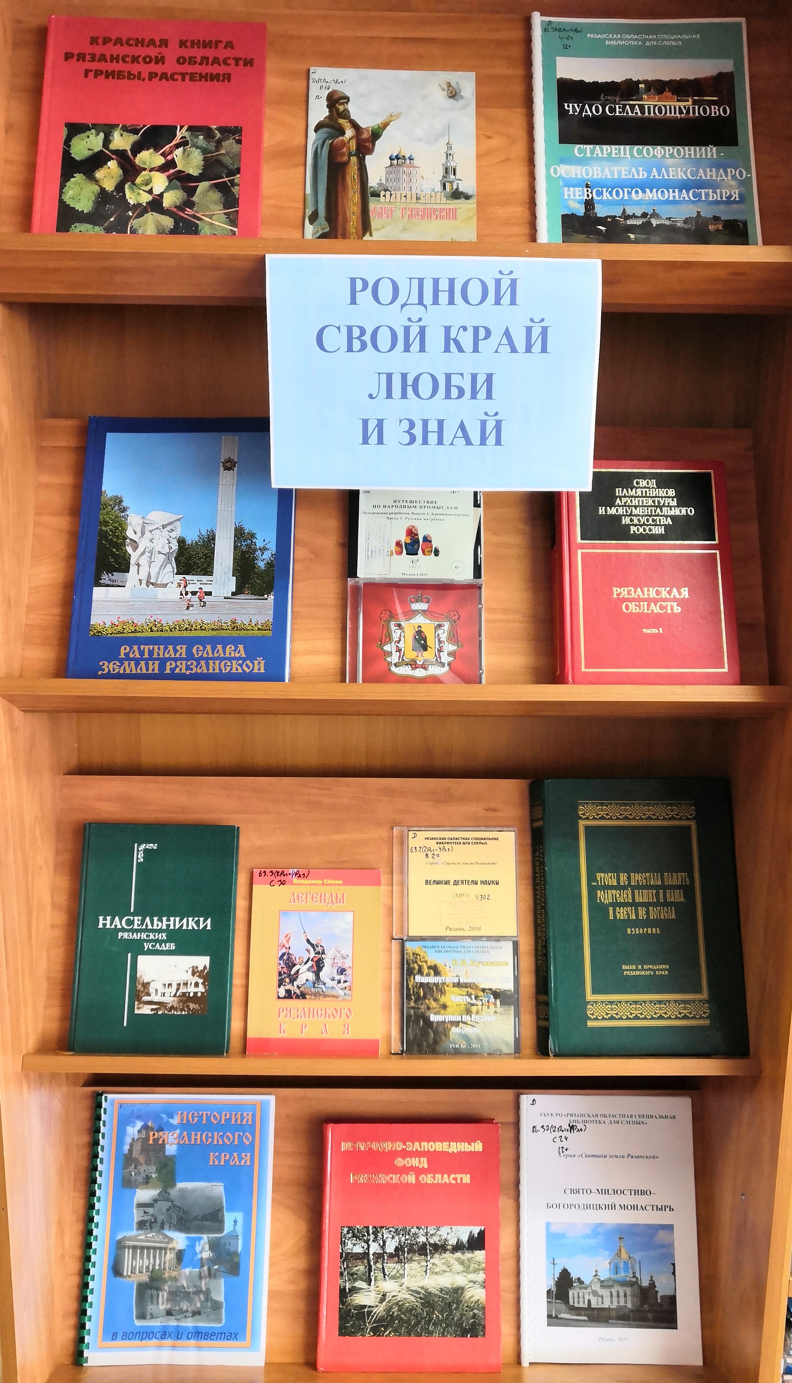 Невозможно любить Отечество, не зная своей малой родины, своего села, города, области. Рязанский край богат своей природой, историей, а главное, знаменитыми земляками, внесшими огромный вклад в мировую историю, науку и культуру. Узнать о Рязани и рязанцах ребята могут из изданий тифлоинформационного отдела нашей библиотеки.
