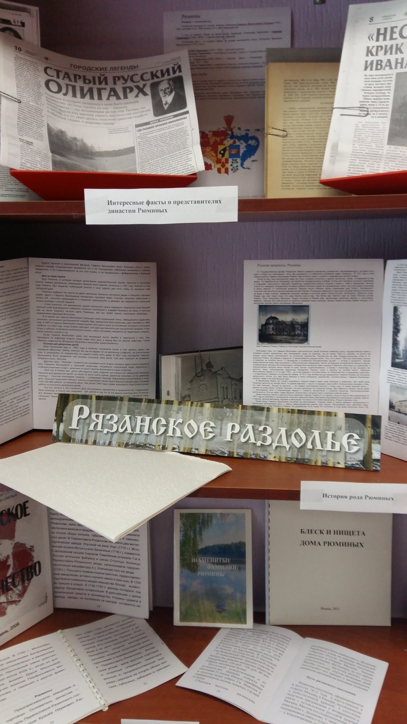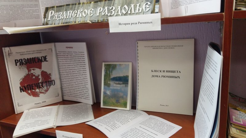 С 1 по 30 июня 2017 года в читальном зале Рязанской областной специальной библиотеки для слепых на краеведческой полке «Рязанское раздолье» экспонируется книжная выставка «Род Рюминых».