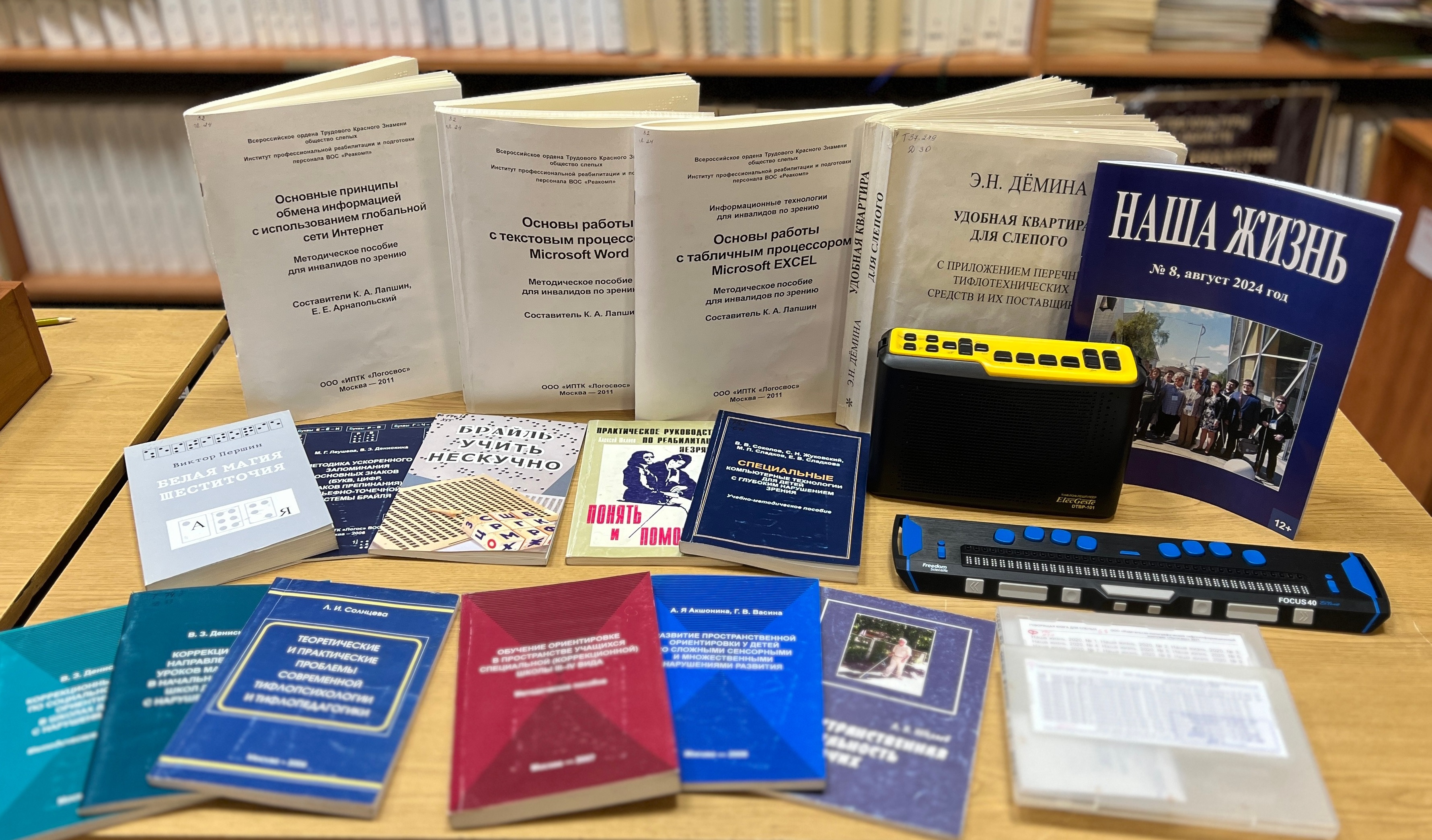 На выставке будут представлены книги, напечатанные шрифтом Брайля, рельефно-графические пособия, аудиокниги на флэш-картах и CD-дисках. В отдельный раздел выставки войдут различные практические и методические пособия по изучению системы Брайля, по обучению современным компьютерным технологиям людей с нарушением зрения. Также все желающие смогут познакомиться с принципом работы специальных устройств и программ, облегчающих доступ к информации для людей с инвалидностью по зрению.