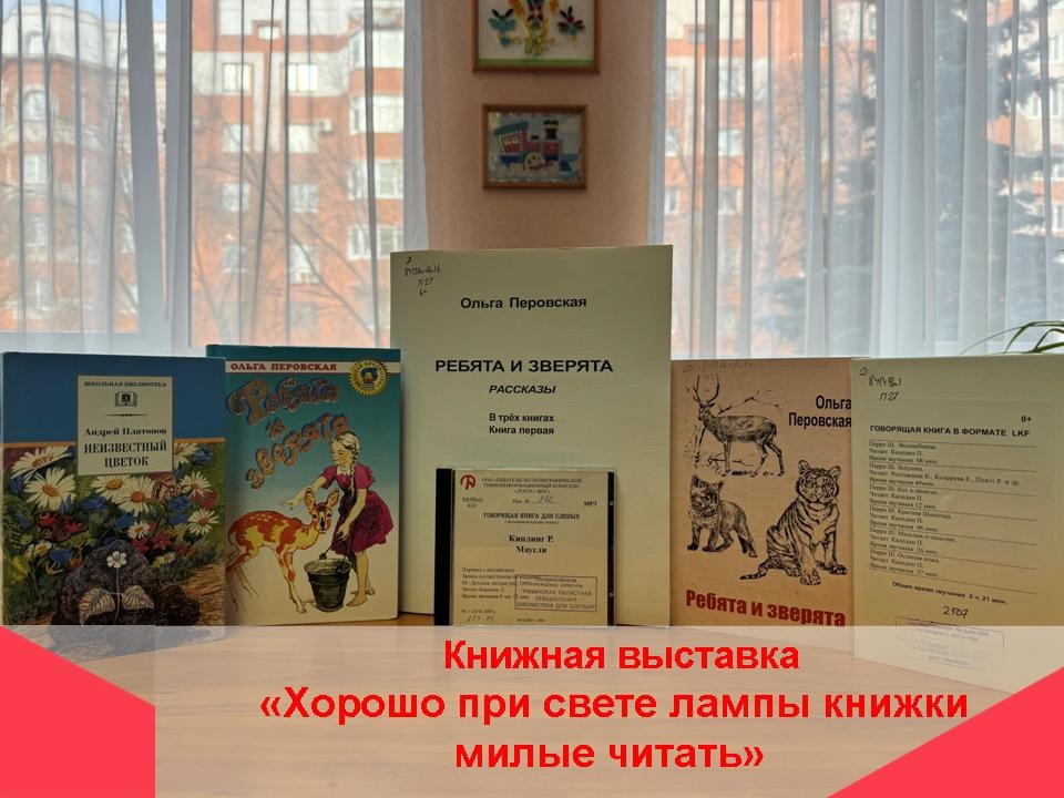 С 17 по 31 марта 2025 года в детском отделе Рязанской областной специальной библиотеки для слепых будет экспонироваться книжная выставка «Хорошо при свете лампы книжки милые читать», посвящённая Неделе детской книги. На выставке будут представлены произведения русских и зарубежных писателей, написанные о детях и для детей: весёлые рассказы А. Раскина «Как папа был маленьким»; рассказы «Ребята и зверята» О. Перовской; «Неизвестный цветок» А. Платонова; сказки С. Михалкова, Р. Киплинга и Ш. Перро