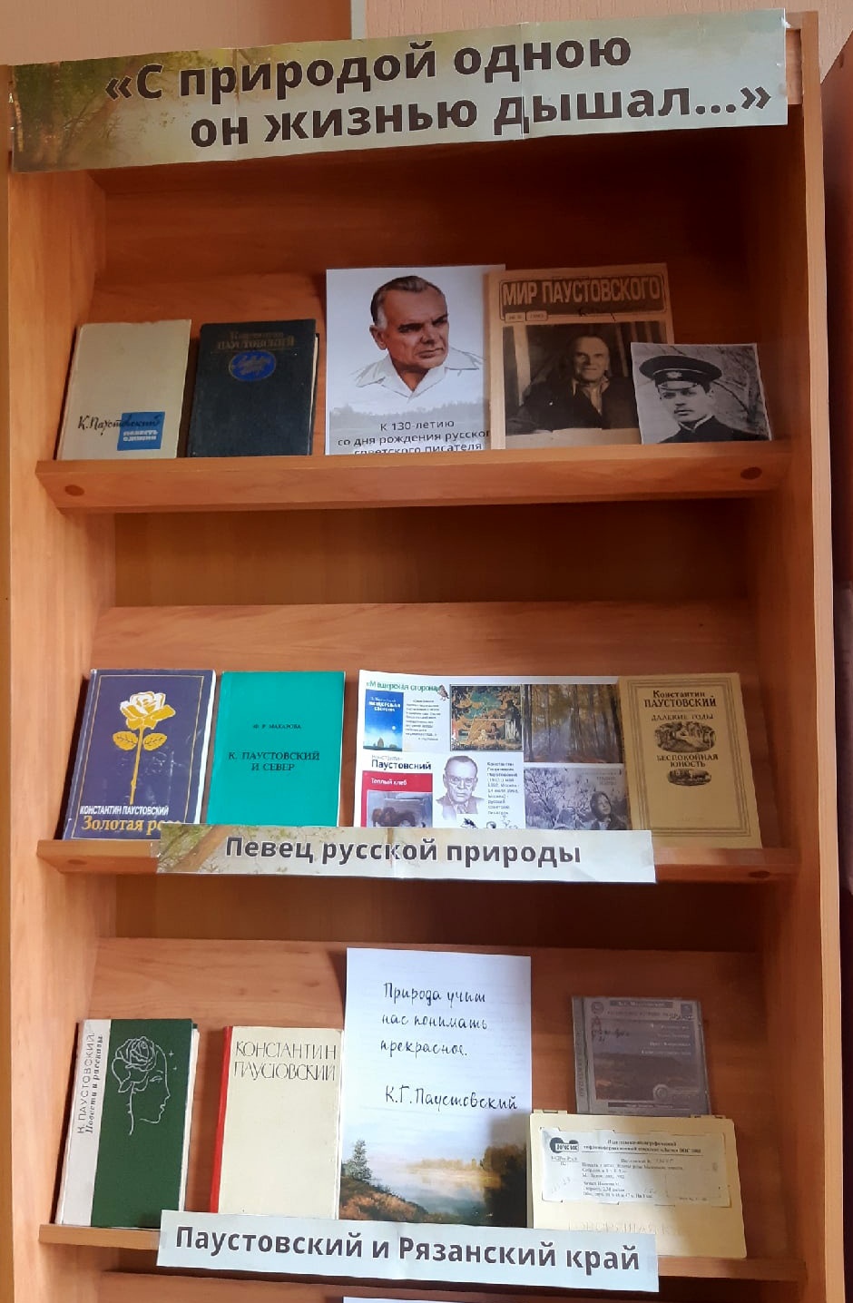 С 30 мая по 16 июня 2022 года в отделе обслуживания библиотеки экспонируется книжная выставка «С природой одною он жизнью дышал…», посвящённая 130-летию со дня рождения русского советского писателя К.Г. Паустовского.