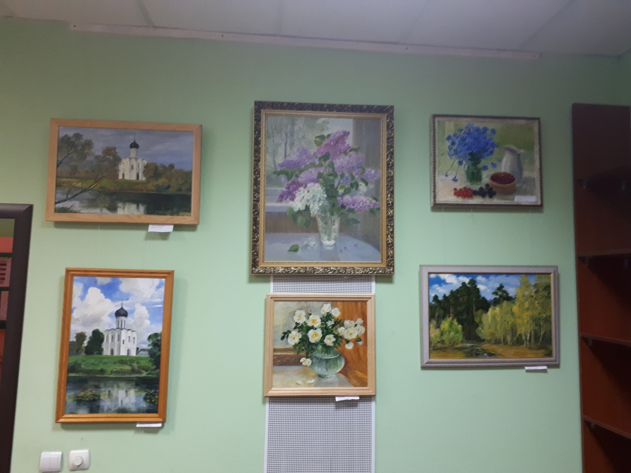 На выставке представлено 6 картин – пейзажная живопись и натюрморты, и 15 расписных досок, выполненных в разной технике (хохлома, жостовская, пермогорская роспись).
