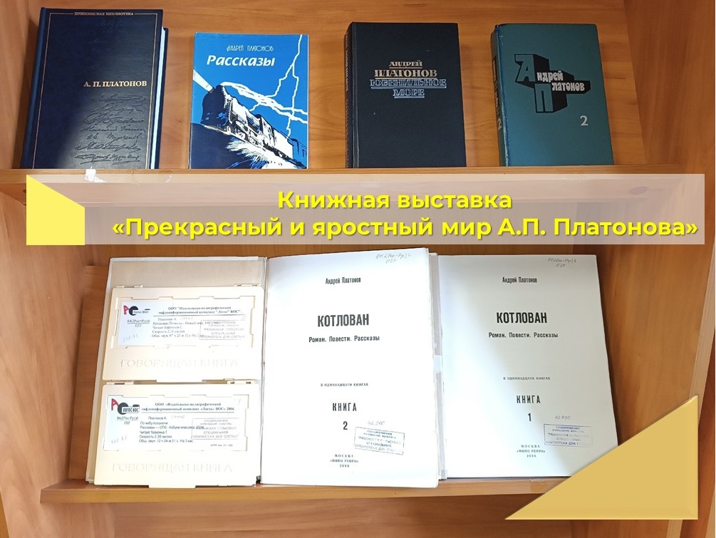 Со 2 по 26 сентября 2024 года. Книжная выставка «Прекрасный и яростный мир А.П. Платонова»Афиша