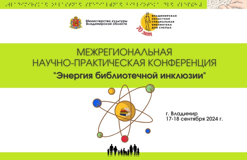 Специалисты библиотеки и Регионального методического центра по работе с инвалидами приняли участие в Межрегиональной научно-практической конференции «Энергия библиотечной инклюзии», организованной Владимирской областной специальной библиотекой для слепых к 70-летнему юбилею (17–18 сентября 2024 г.).
