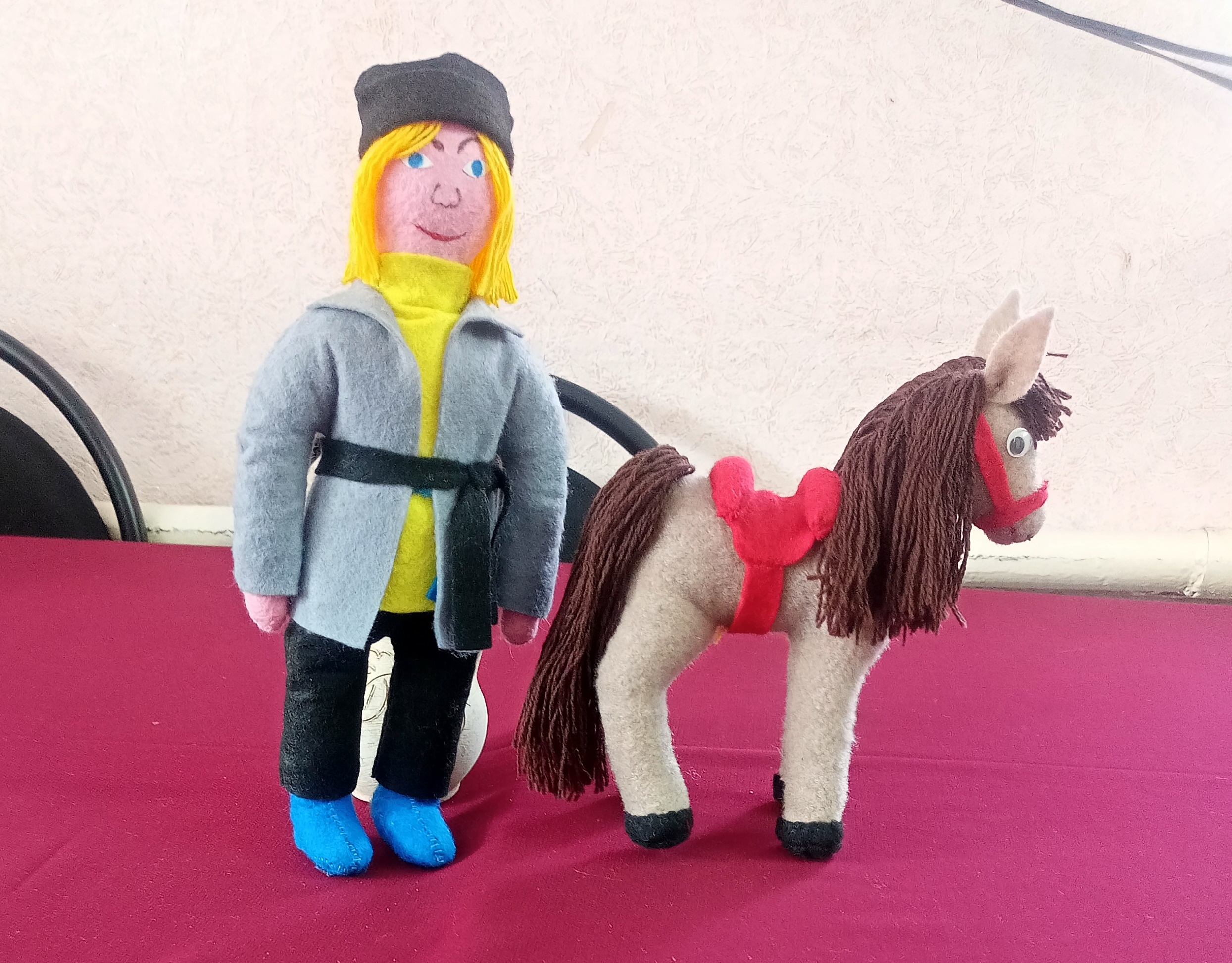 Творчество – это прекрасный способ выразить свои чувства и эмоции, поделиться своей радостью с окружающими. По сложившейся доброй традиции Екатерина Алексеевна и Татьяна приняли участие в творческом проекте «Путешествие с Коньком-Горбунком». Какую поделку мастерить, сомнений не было: конечно, конька и Ивана. Продумали материал (фетр, холофайбер, вязальные нитки). Так из-под их умелых рук появился задорный конёк-горбунок, словно сошедший со страниц сказки. Каждая деталь продумана до мелочей: развивающаяся грива, лукавый взгляд и вздернутый носик выдают его неукротимый нрав. Рядом с ним, конечно же, Иван, выполненный в технике сухого валяния. В его облике чувствуется простота и доброта.