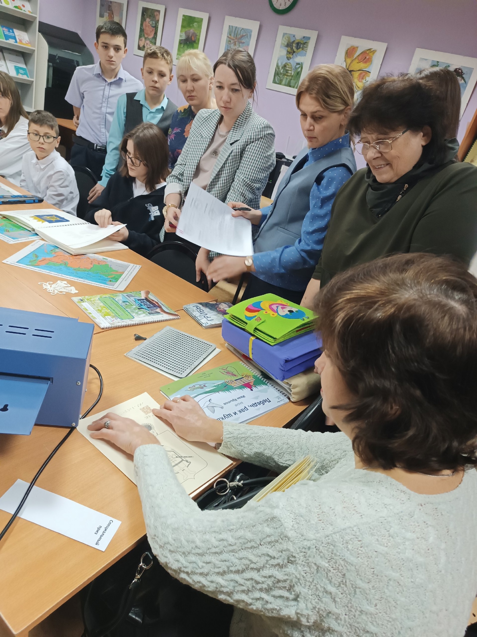 Сотрудники детского отдела библиотеки для слепых рассказали об особенностях восприятия незрячих, о способах изготовления тактильных книг и письме по Брайлю.