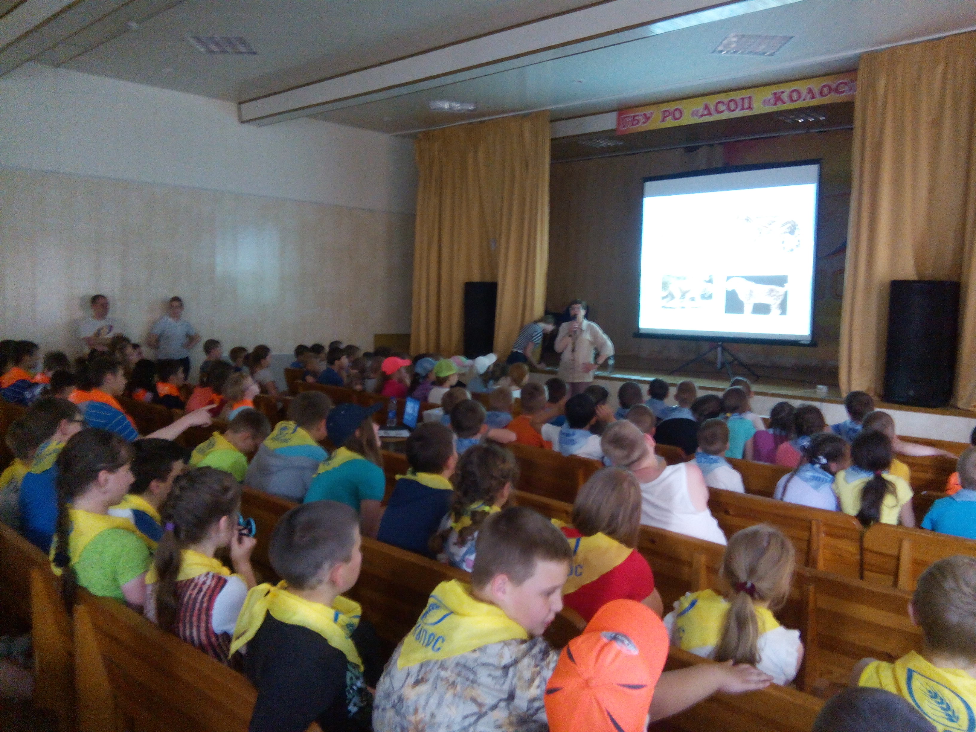 Для младших отрядов смены прошла медиалекция «О тех, кто с нами рядом»: кошки и собаки в истории человечества». Ребята узнали о происхождении, одомашнивании наших домашних любимцев, об обожествлении собак и кошек в Египте, об их распространении по континентам. Перед слушателями предстали знаменитые представители кошачьих и собачьих семейств: корабельный кот Саймон, астрокошка Фелисетт, верный хозяину пёс Хатико, Болто, спасший людей от эпидемии и многие другие. Ребята узнали об интересных пристрастиях кошек и собак, познакомились со смешными случаями из их жизни. Завершилось мероприятие подборкой весёлых видеороликов «Как кошка с собакой».