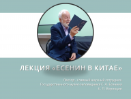 Лекция главного научного сотрудника Государственного музея-заповедника С.А. Есенина К.П. Воронцова «Есенин в Китае»
