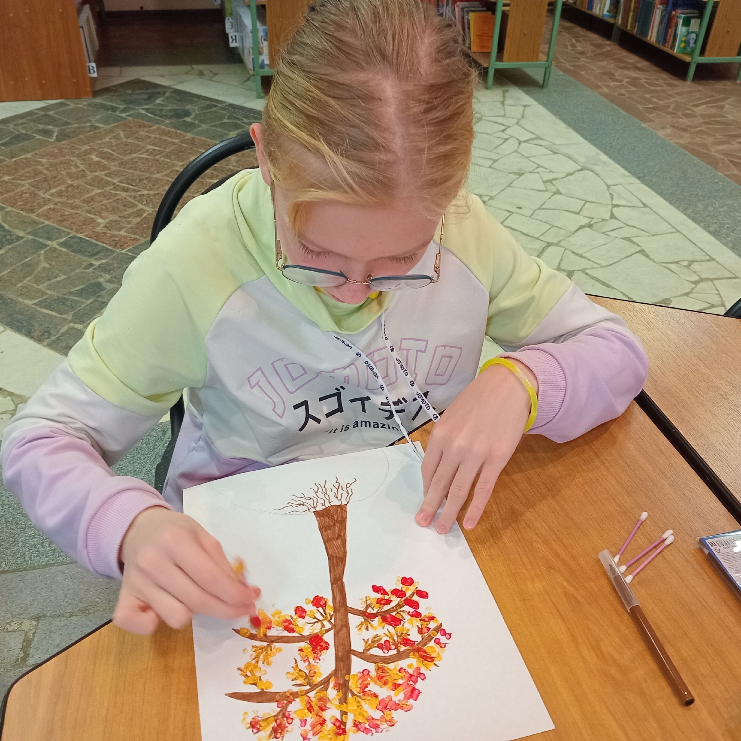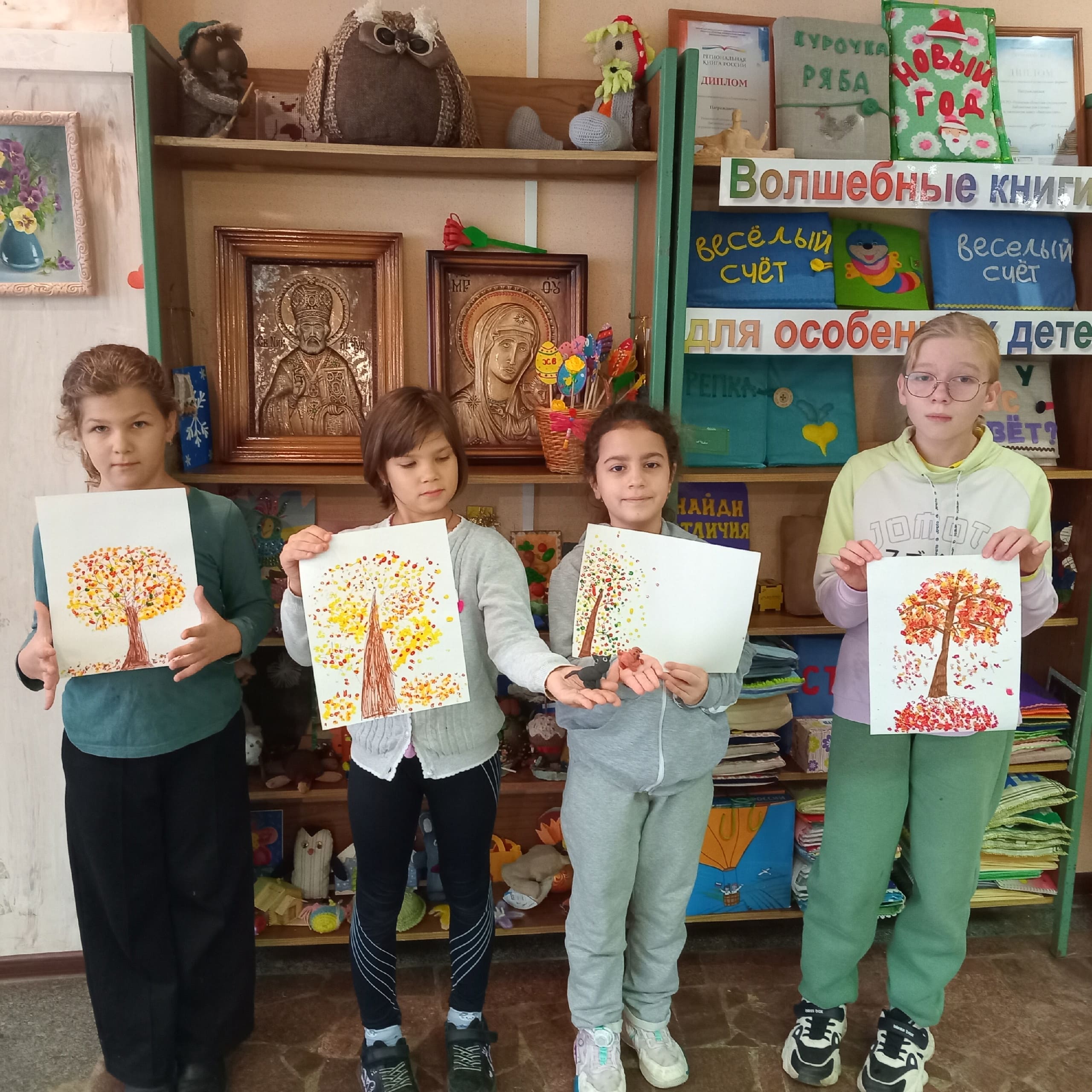 25 октября 2025 года в детском отделе Рязанской областной специальной библиотеки для слепых прошло занятие кружка «Умелые ручки» на тему «Рисование. Осеннее дерево».