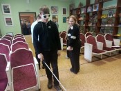 Самые интересные испытания ждали их на станции «На ощупь», где участникам с завязанными глазами предстояло определить разные виды круп и собрать носки по парам. На станции «Белая трость» дети учились ориентироваться в пространстве, передвигаясь с завязанными глазами с помощью тактильной трости.