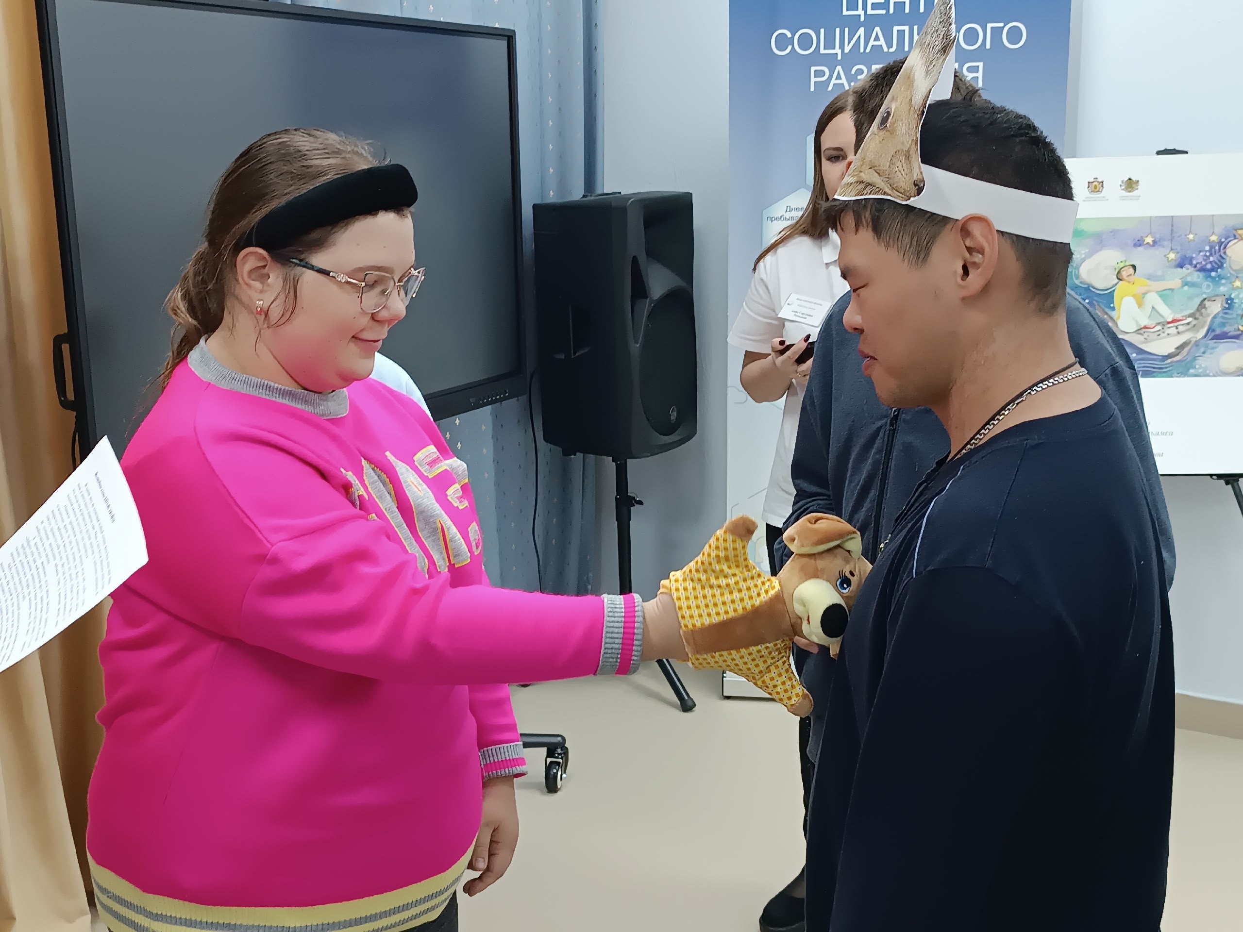 «Подари другому радость» – под таким названием в Центре социального развития 19 ноября 2025 года прошла литературно-игровая программа ко Всемирному дню приветствий. Дети и подростки с инвалидностью узнали об истории праздника, потренировались приветствовать друг друга на разных языках. Особенно понравилось ребятам здороваться по-новозеландски – потереться о спину друг друга. Также участники мероприятия узнали, как здороваются животные.