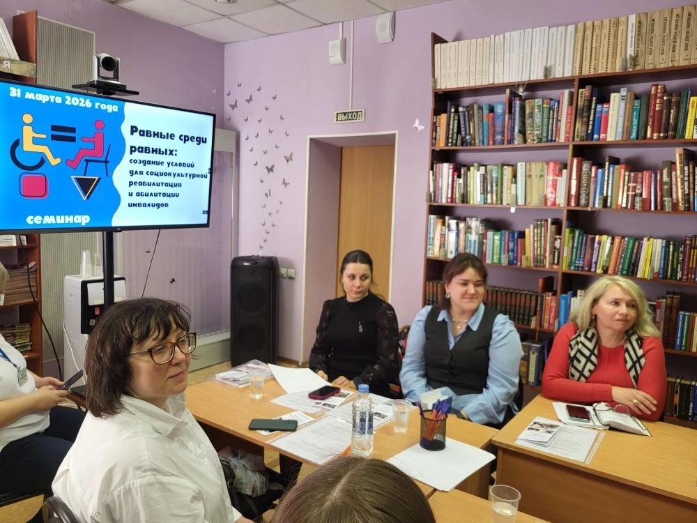 31 марта 2026 года в Рязанской областной специальной библиотеке для слепых состоялся семинар «Равные среди равных: создание условий для социокультурной реабилитации и абилитации инвалидов», организованный Региональным методическим центром по работе с инвалидами.